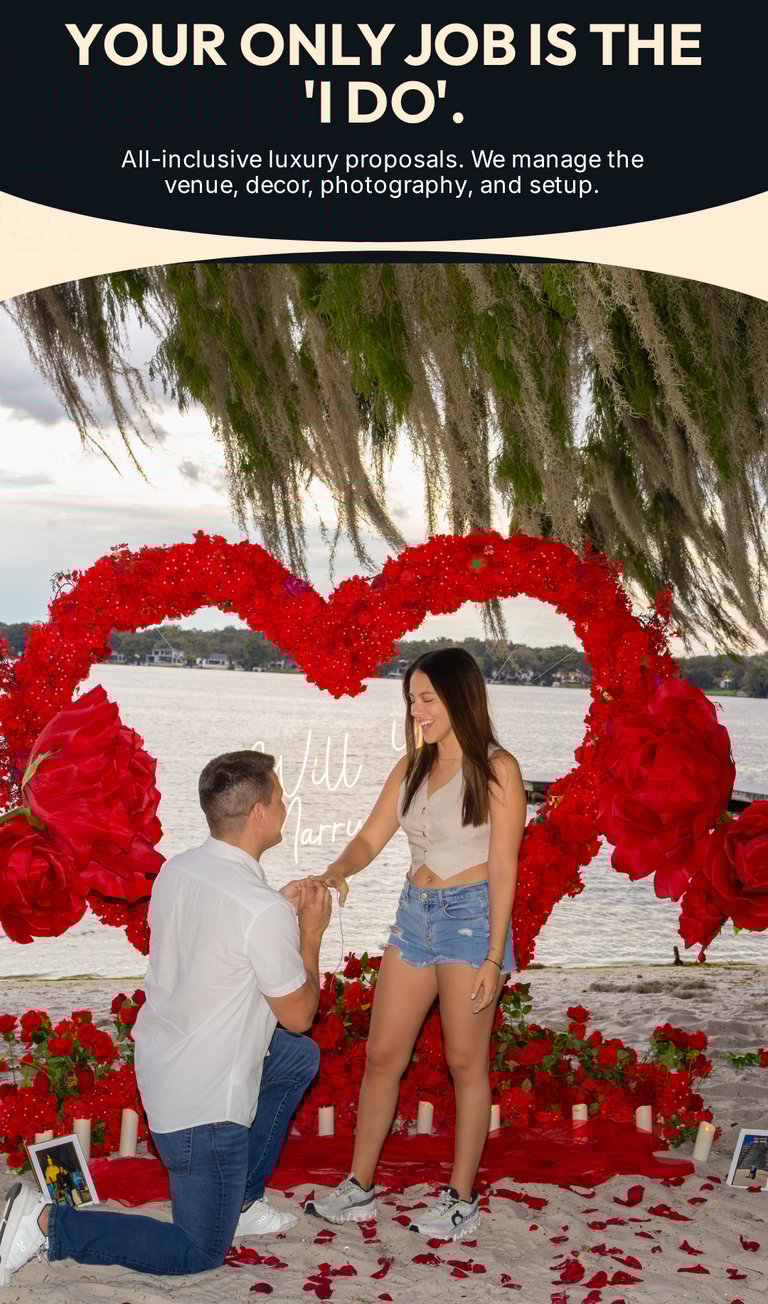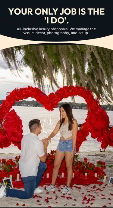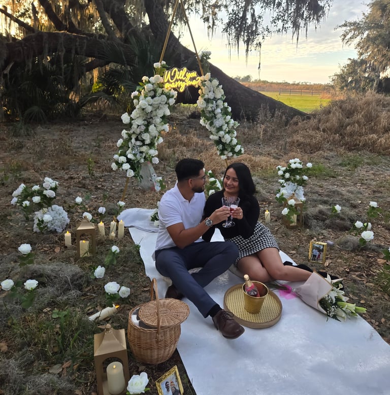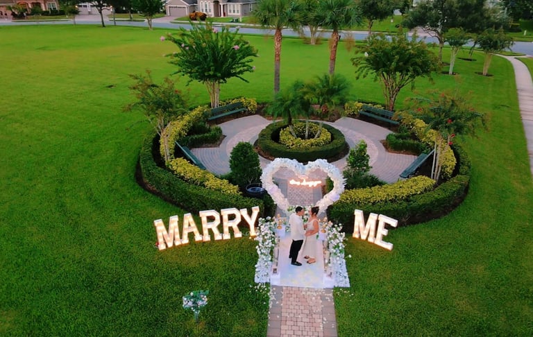 Surrounded by peaceful greenery and natural light, our Park & Garden Proposal Packages are designed for romantic, intimate “yes” moments. We handle the décor, flowers, candles, and photography — so you can simply arrive, take a deep breath, and ask the most beautiful question of your life. Choose from elegant simplicity to breathtaking statement setups, all customizable to your style and story.
